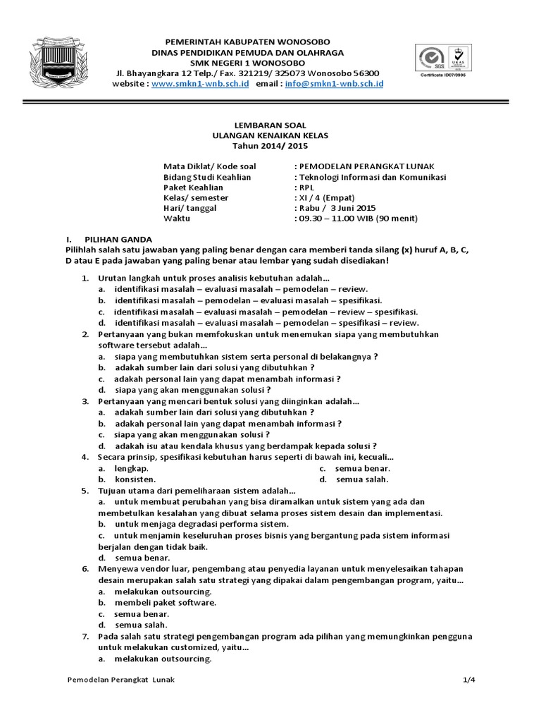 Soal Upk Ukk Rpl 2019 K13 Paket 1 Indo Smart School from indosmartschool.com Maybe you would like to learn more about one of these? We did not find results for: Check spelling or type a new query. Soal dan jawaban rekayasa perangkat lunak.